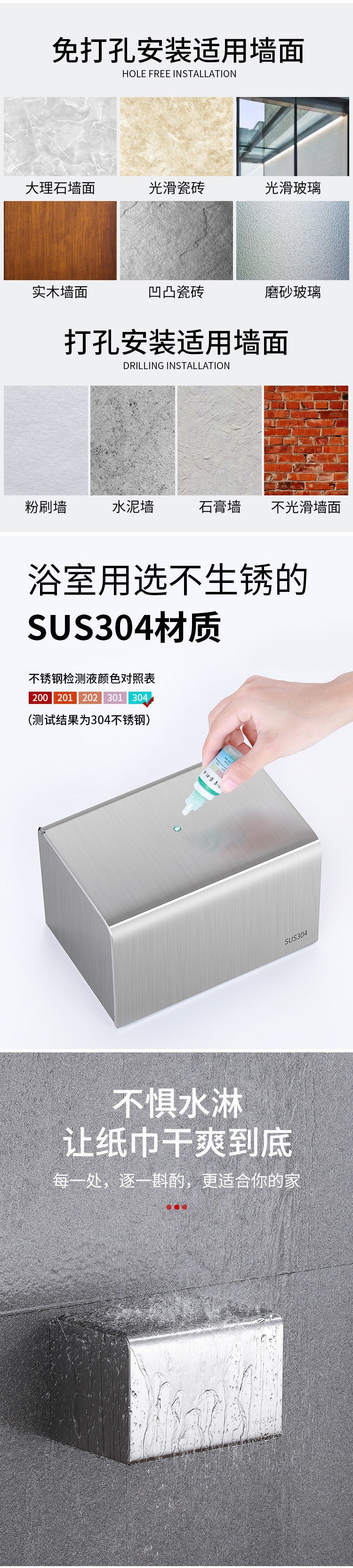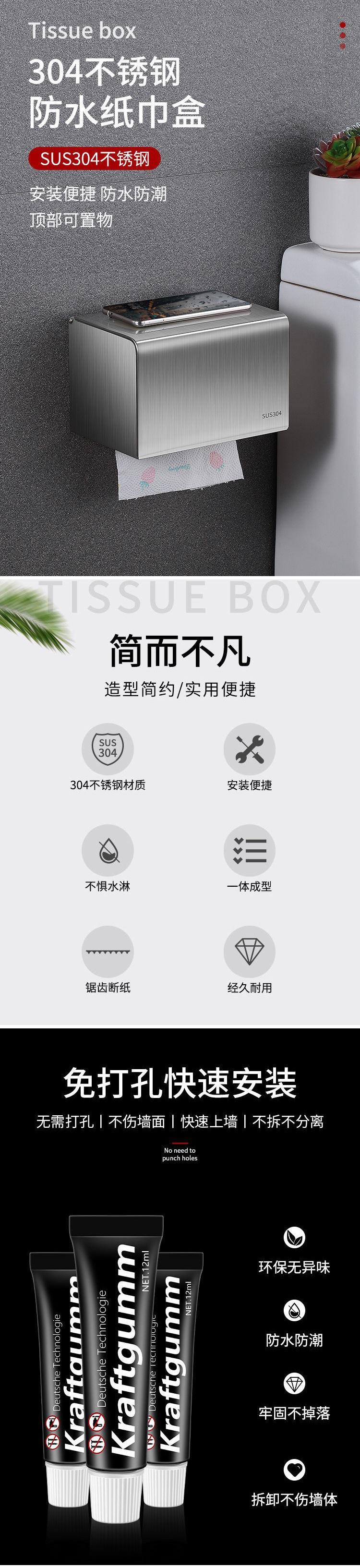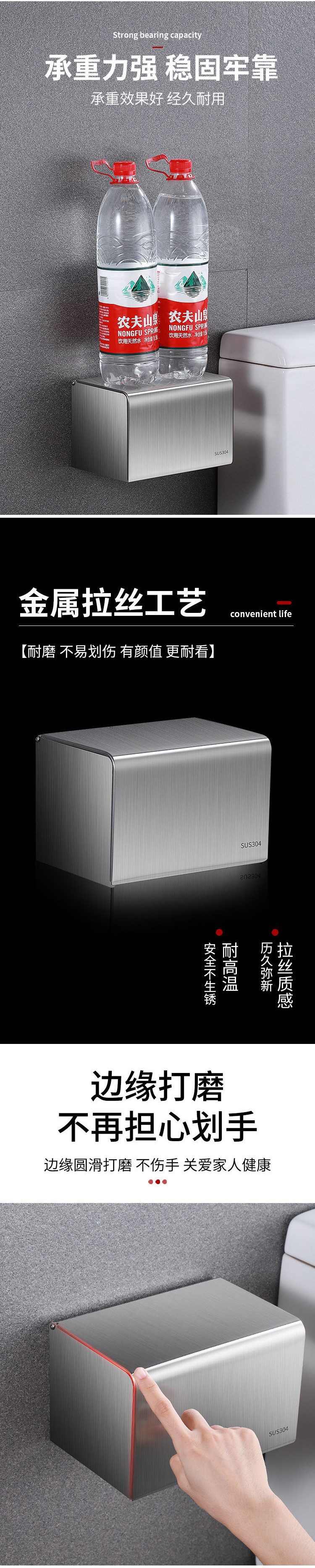 Toilet Paper Dispenser Box Tissue Holder 304 Stainless Steel Toilet Waterproof Paper Roller Bathroom